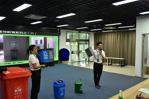 为贯彻习近平总书记对垃圾分类的重要指示精神,落实省、市、区和街道对垃圾分类、开展文明城市建设的工作要求,best365足球彩票官网公司下属的研究院公司作为广州市小谷围街唯一的垃圾分类区属国有企业实施单位,决定把落实推行生活垃圾分类工作列为下半年工作一项重点任务,牵头成立了园区垃圾分类工作小组,以点带面,在园区大力推行宣传垃圾分类,并于718日联合园区物管单位创雅公司组织园区企业代表在基地展厅进行生活垃圾分类管理制度培训。